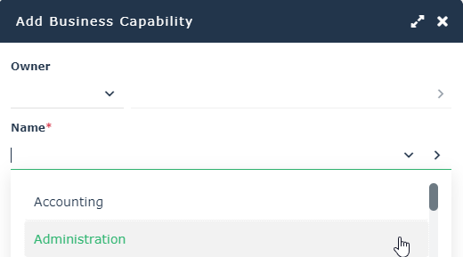 3. Click on the arrow associated with the Name field and select the business capability that interests you.