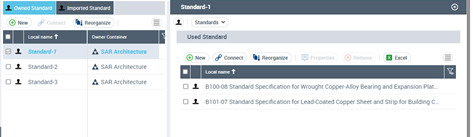 HOPEX DoDAF helps you define standards in a list or in a navigation tree.