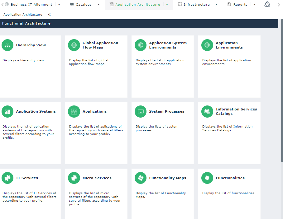 Example: The Application Architecture tab displays the Functional Architecture page.