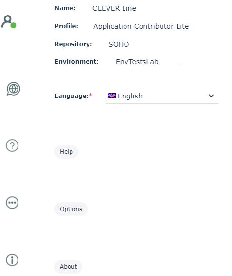 • Settings, which displays the name of the HOPEX user used for mapping and its connection characteristics (profile, repository, environment). Use this page to: