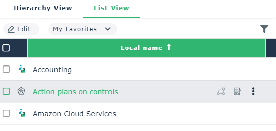 In HOPEX Explorer, all the navigation tabs (except the Home page and the Dashboard) provide direct access to your favorites.