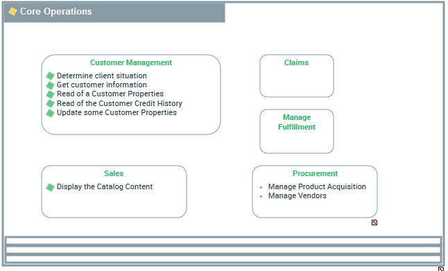 For example, the business capability grouping operational activities is broken down into several business capabilities: "Customer management”, "Supply", "Sales", "Complaints” and "Order Management".