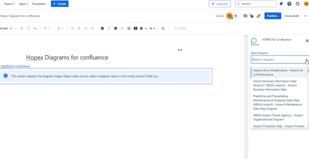 1. In a Confluence page, click "+" button and search for "Hopex for Confluence" macro.