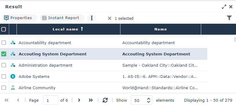 • (Search by object type) generate instant reports or perform Excel export on objects selected in the list.