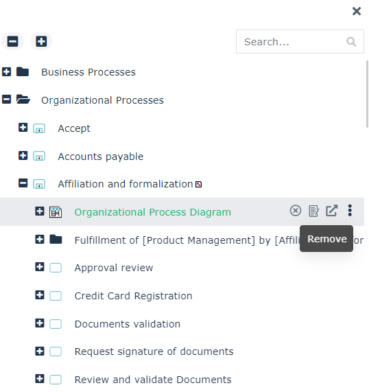 E.g.: in HOPEX Business Process Analysis Solution, select the navigation menu Processes > Hierarchy.