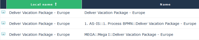 Certain types of objects in HOPEX have a local name, specific to a given context. This mechanism allows another object to use the same name, but in a different context.