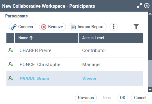6. (If needed) To change the access level of a participant, in the Access Level field of the person, select another access level.
