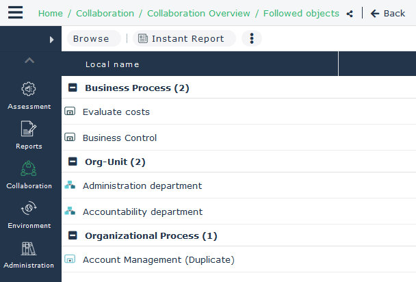 1. In your HOPEX desktop, access the object you want to follow.