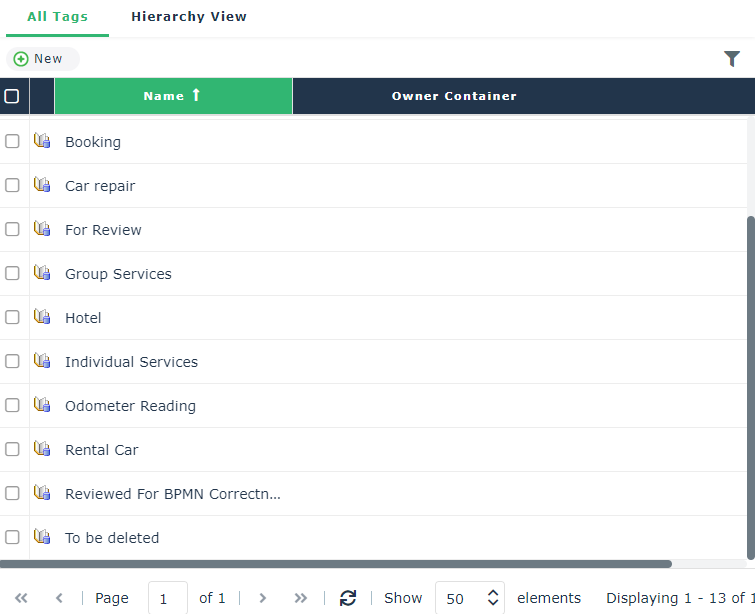 3. To display the Tags in the form of a tree structure, click Hierarchy view.
