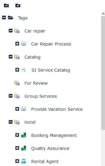 • To display the objects tagged with a specific tag, expand the tag folder concerned.