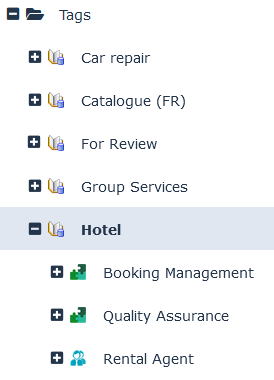 E.g.: expand the folder of the “Hotel” tag.