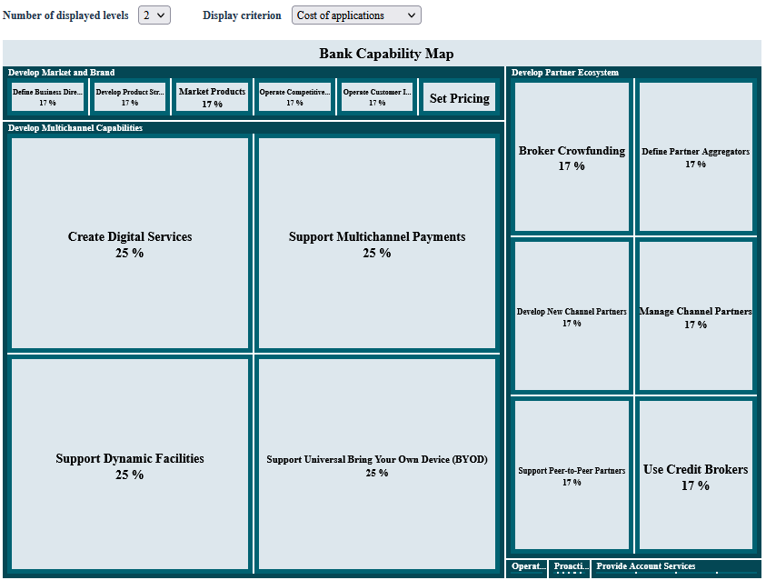 This report breaks down a capability hierarchy into a treemap according to three available criteria (parameters):