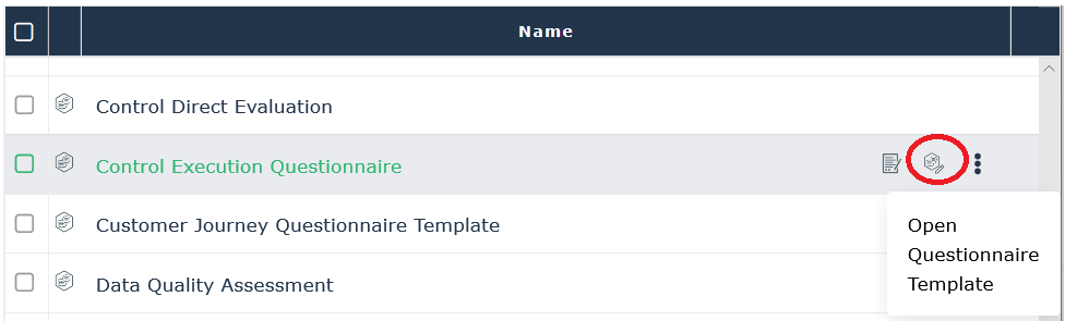 2. Hover over the questionnaire template and click the Open Questionnaire Template icon that appears.
