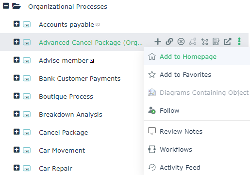![]() | Open or preview the diagram(s) describing the object, in the edit area, to the right of the tree | |