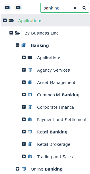 Repository objects are often presented in a tree structure. These trees enable to perform actions on objects and also drag and drop objects from the tree into a diagram.