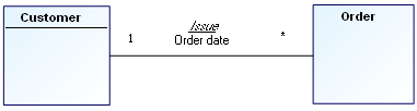 A constraint association (one of its maximum multiplicities is 1) does not result in a table. In the following example, an order has only one customer.