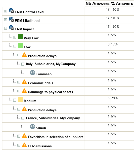 By expanding a reply, we obtain the name of the assessor and the risks to which the reply relates.