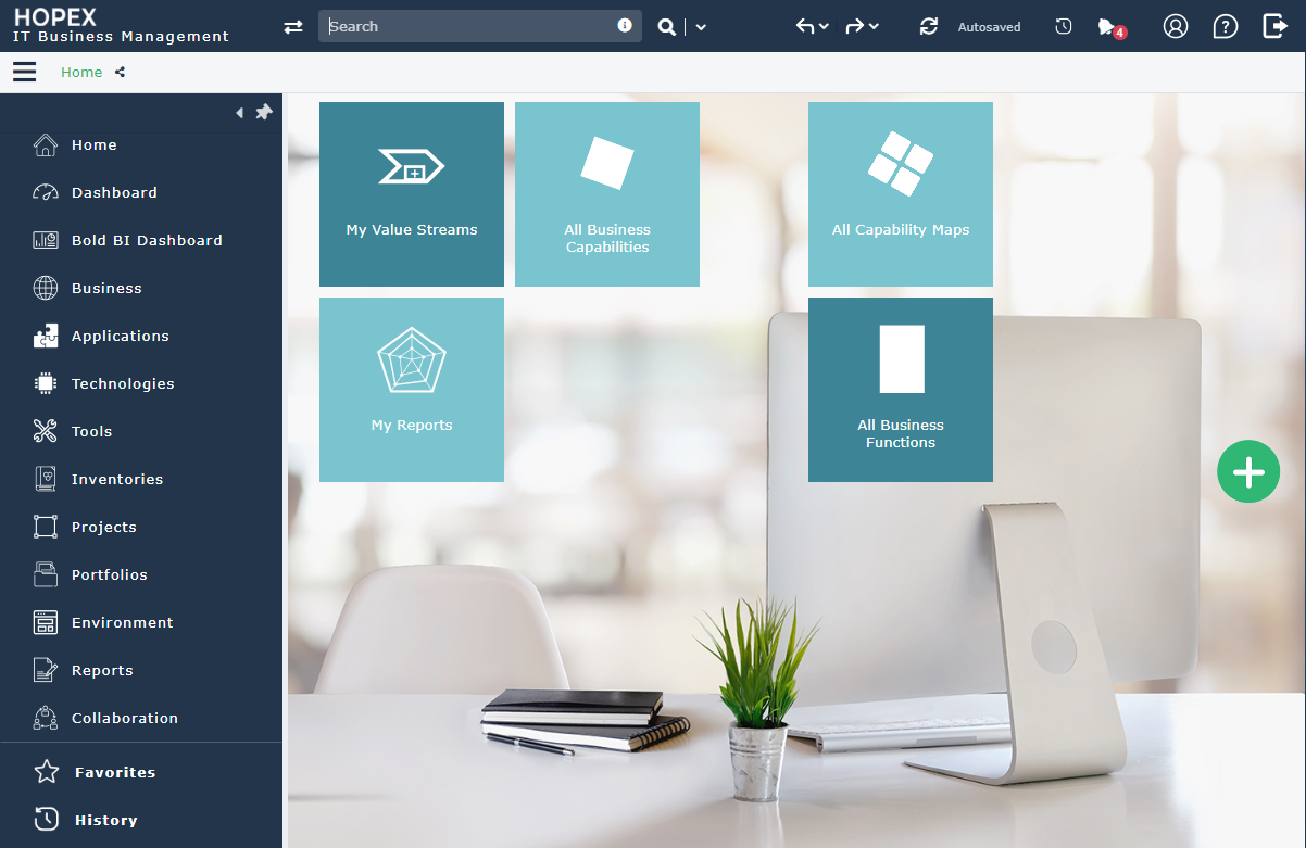 Desktops of HOPEX IT Business Management