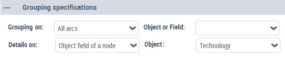 3. In the Grouping specifications section, in the Details on field, use the drop-down list to specify the object you want to display.