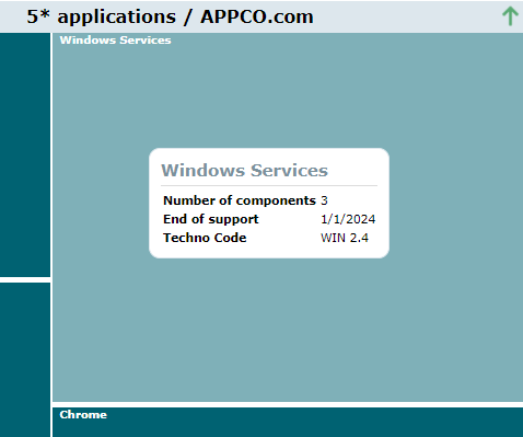 Example: hover the cursor over "Windows Services" Software Technology, its "Techno Code" and "End of suppport" values are displayed in a pop-up window.