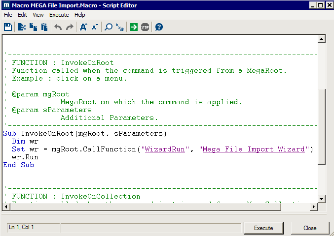 14. In the Behavior frame, click the Macro field arrow and select the required macro (example: "MEGA File Import.Macro").