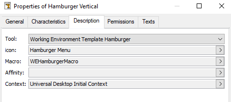Example: in the “Hamburger vertical” Mega Parameterized Tool, the “Universal Desktop Initial Context” Desktop Container Context is connected to: