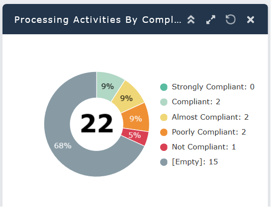 This pie chart enables you to view which processing activities are compliant.