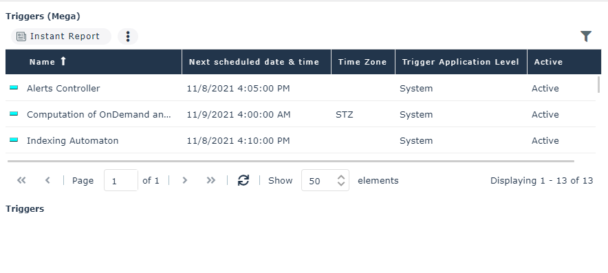 For each scheduled Trigger, it indicates: