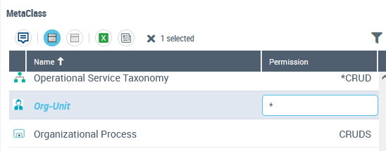 To return to the default value of the permission on the MetaClass, enter the character *.