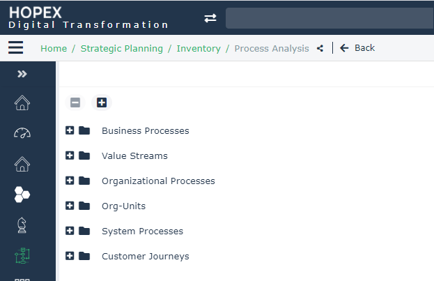 Accessing the organization elements with HOPEX Digital Transformation Desktop