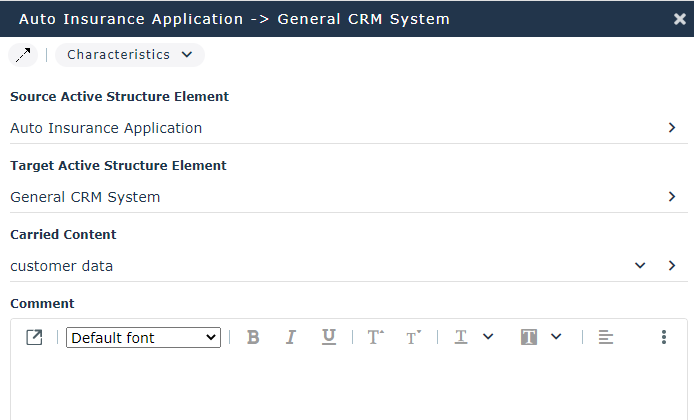 The Characteristics property page of an ArchiMate® Element provides access to: