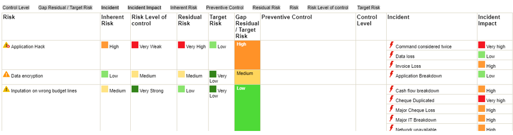 A dashboard enables you to provide a more focused Risk Assurance report to your board. With a dashboard, you can detect inconsistencies between risk assessments, control assessments and incident impacts.