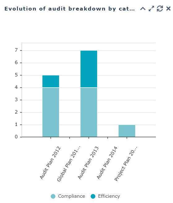 This widget shows evolution over time (by audit plan) of audit breakdown by audit category: