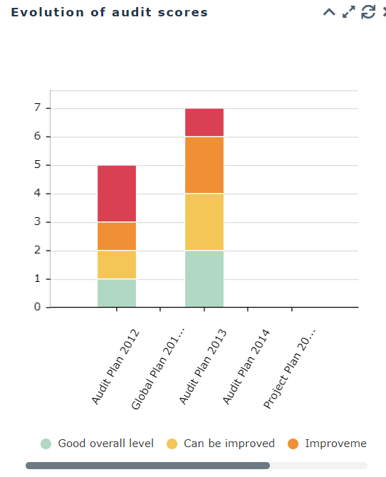 This widget shows evolution over time (by audit plan) of evaluations assigned to audits: