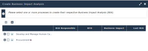 The IRM Manager must create a Business Impact Analysis for each process and send a matrix to the BIA responsible user.