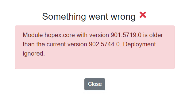 5.1.5. Error Something went wrong. Module X with version YY is older than the current version ZZ. Deployment is ignored!