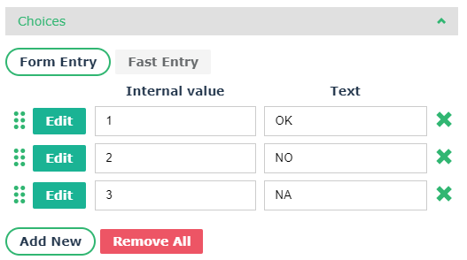 When creating new questions of OK/NO/NA type that must be used in the context of standard aggregation schemas, it is important to add the following values to the possible answers' internal values: