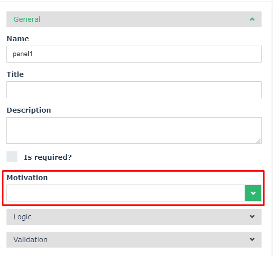 To specify whether the question panel should be dynamically populated with questions belonging to a specific “Questionning Motive”, a dedicated parameter called “Motivation” has been added to the panel property pane.