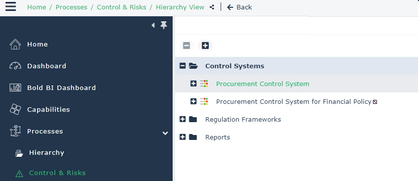 To access the list of control systems from the Processes > Controls & Risks navigation pane:
