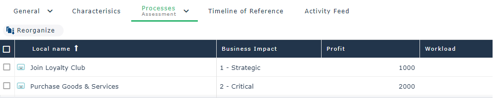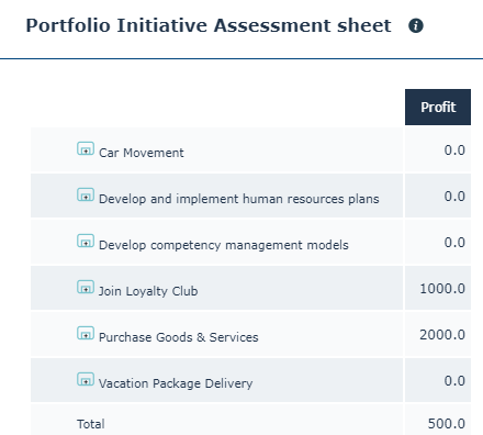 The matrix for assessment of all objects connected to portfolio initiatives according to different criteria is displayed.
