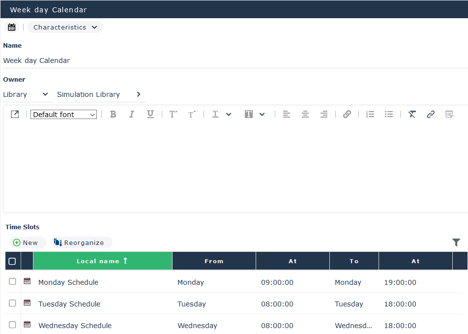 A time slot is defined by the day of the week and the time that mark the beginning of the time slot as well as the day of the week and the time that mark its end.