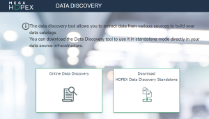 If you cannot connect to the data source from the HOPEX Data Governance desktop, for example for security reasons, you can download the standalone version of Data Discovery to connect to the data sources. In this mode, the metadata description is exported to a Json file that you can then import into HOPEX. In this mode, the metadata description is exported in a Json file. that you can then import into HOPEX.