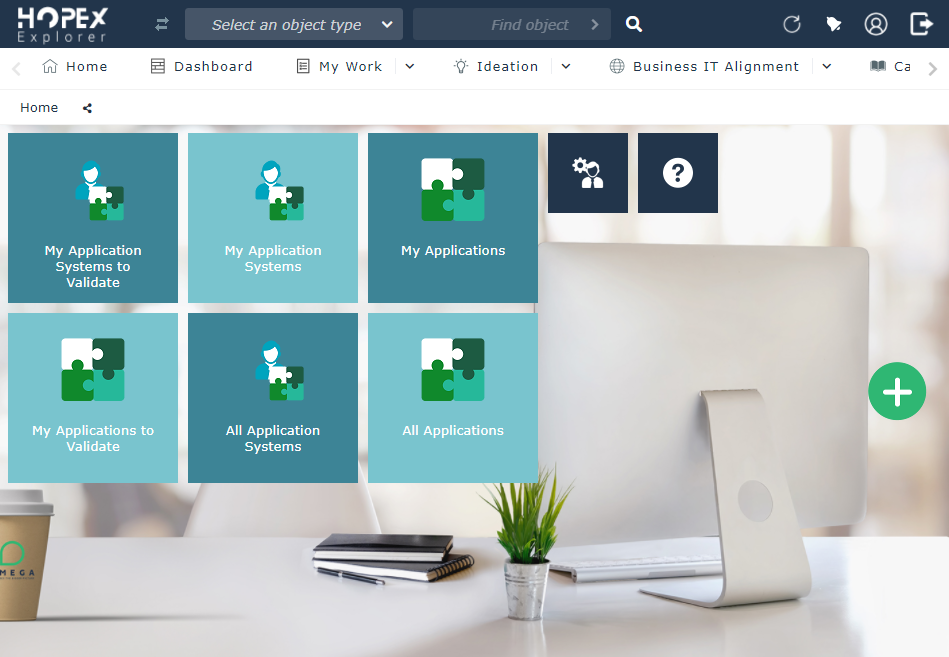 • the HOPEX Explorer desktop in a work environment adapted to the Application Owner profile.