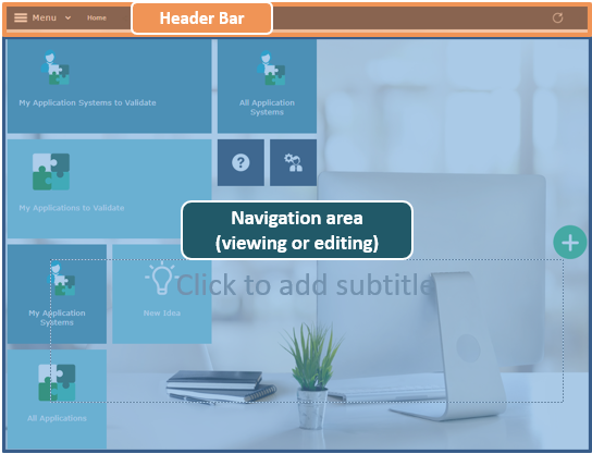 • Home, which provides quick access to objects (via tiles) and to the documentation.
