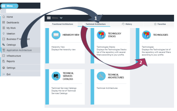 Example: Accessing technologies in HOPEX Explorer