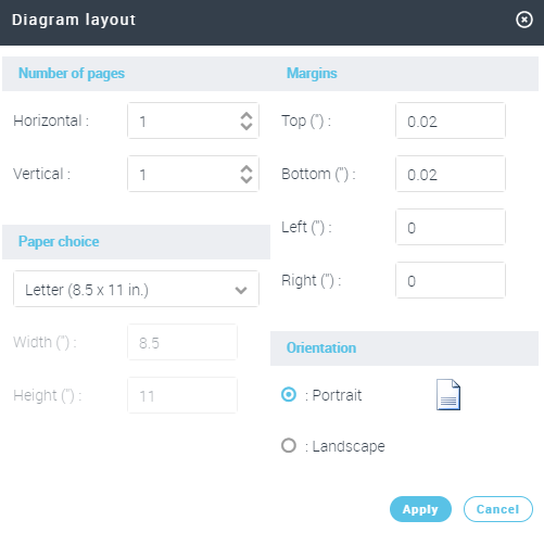 4. Enter the number of pages (width and height) on which you want to print the diagram.