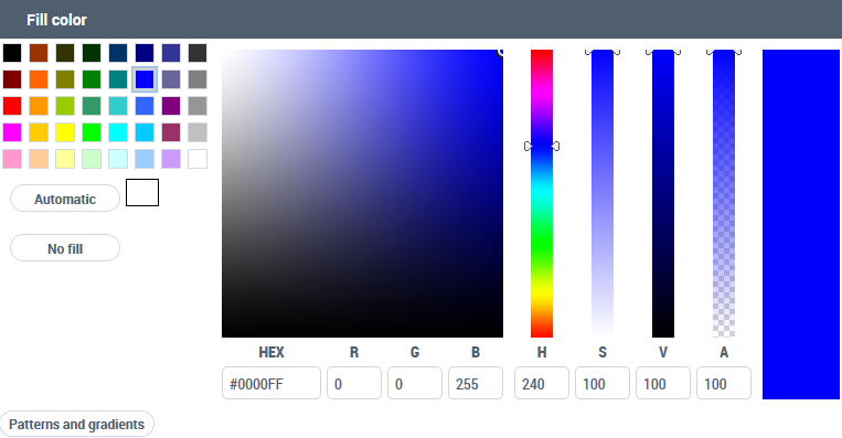 4. (If needed) Adjust the color with the range sliders to the right, or with the hexadecimal, RGB (Red, Green, Blue) or HSV (Hue, Saturation, Lightness) values.