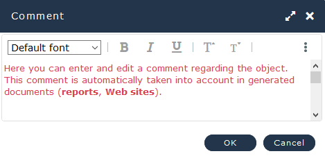To enter or modify a comment associated with an object: