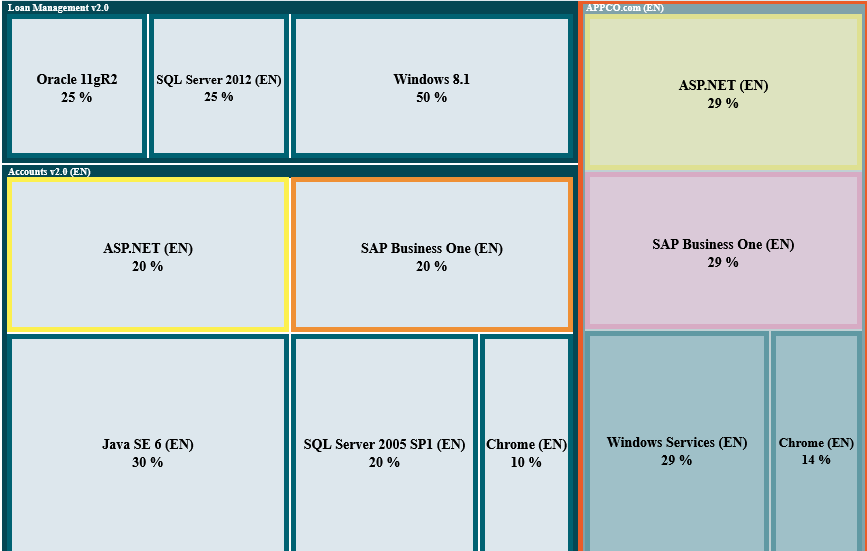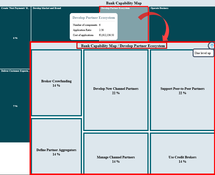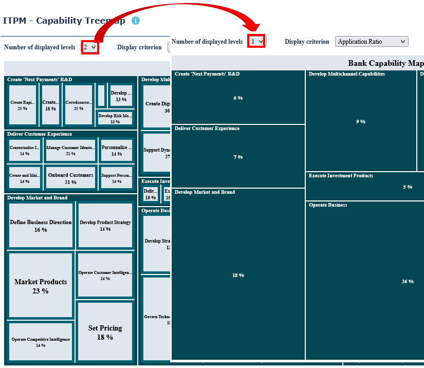 This report breaks down a capability hierarchy into a treemap according to three available criteria (parameters):