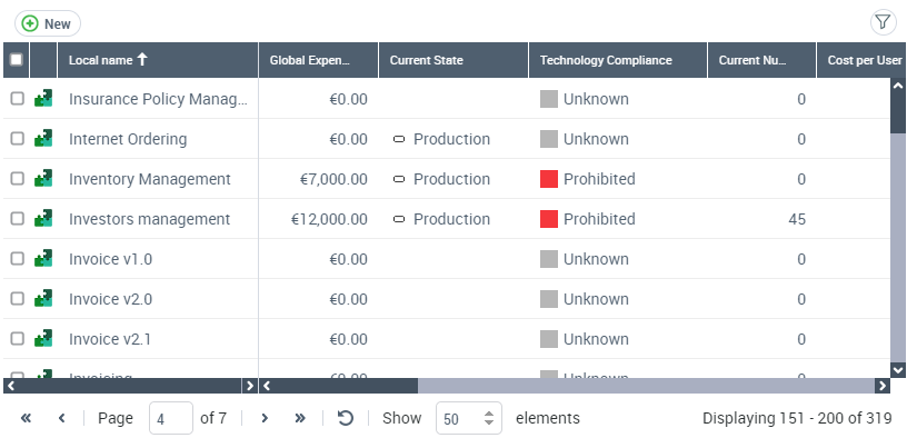 In this list, you can create a new application and filter the list.